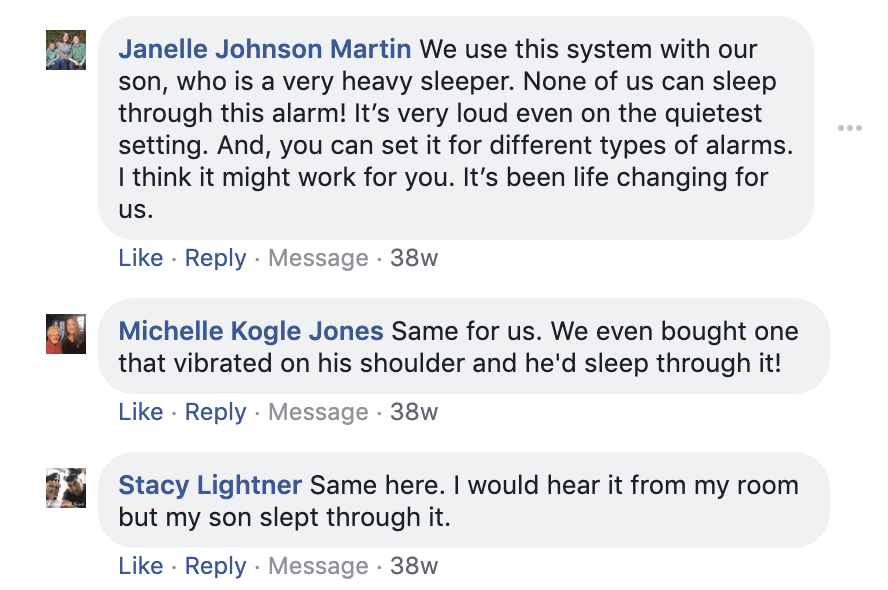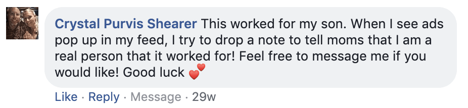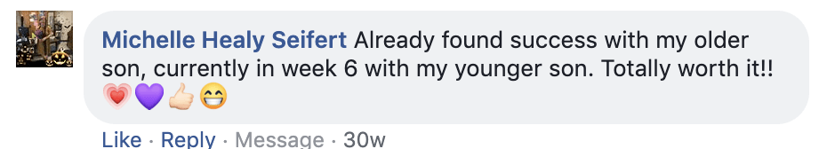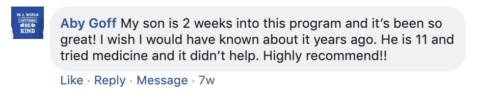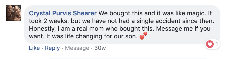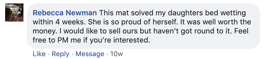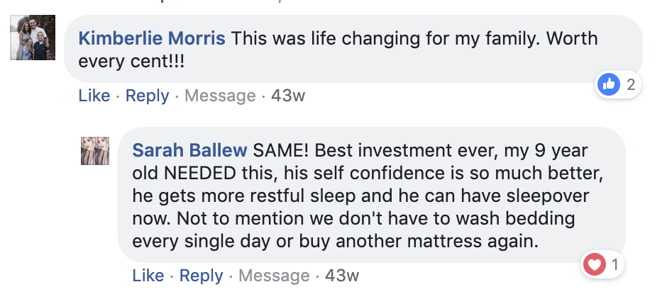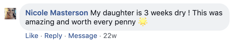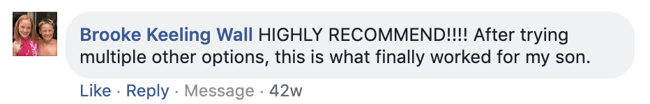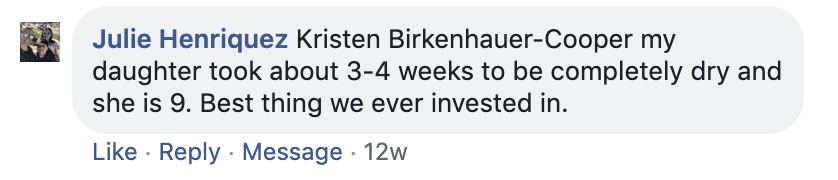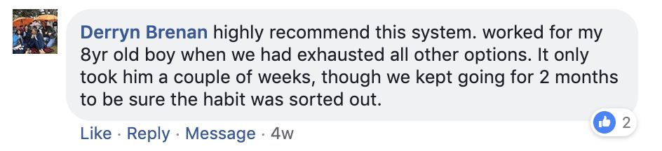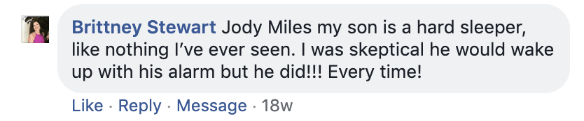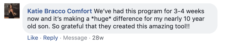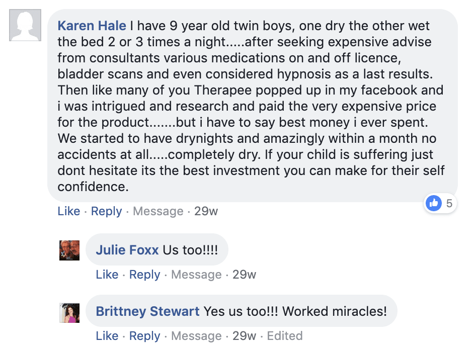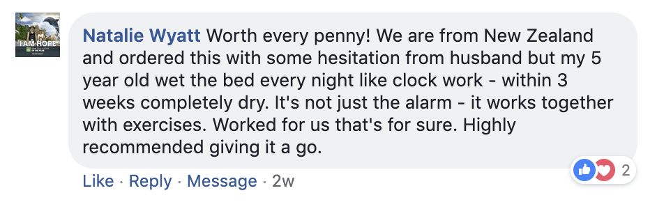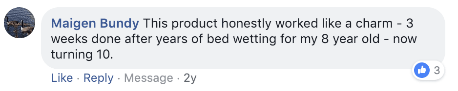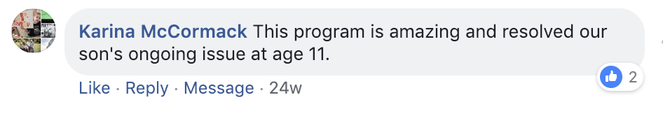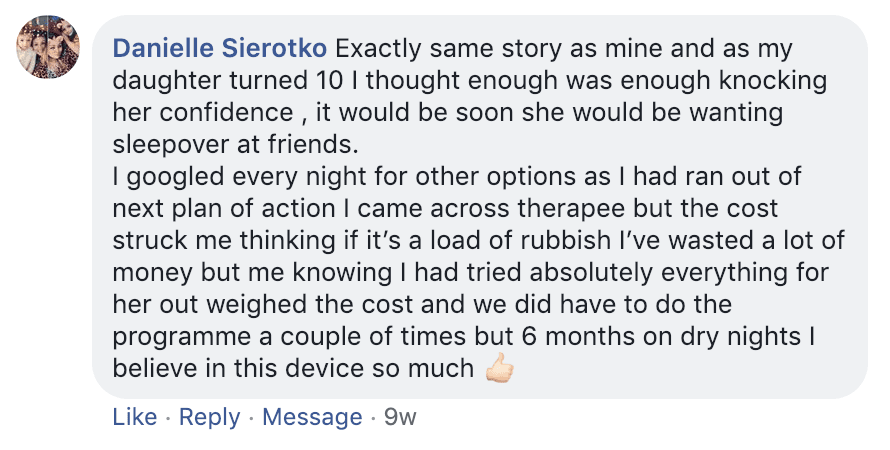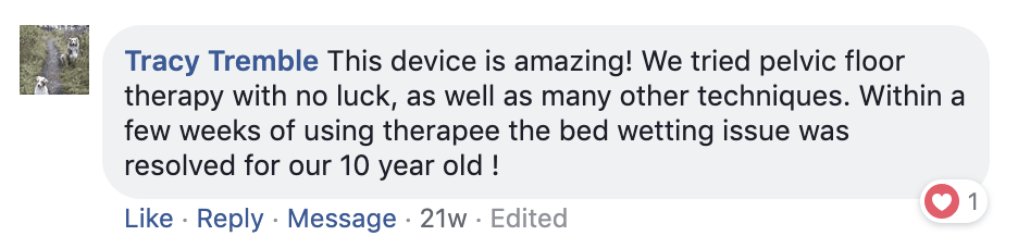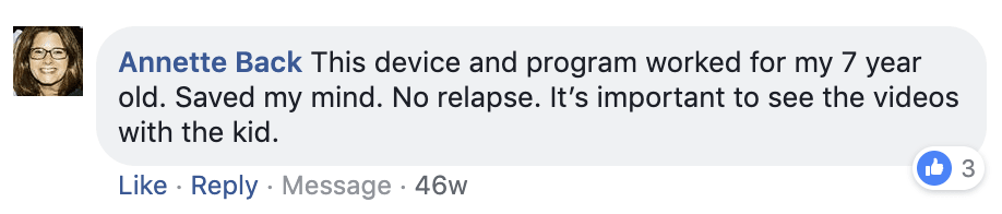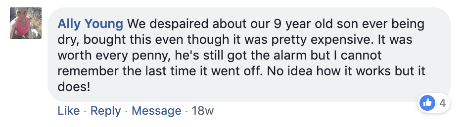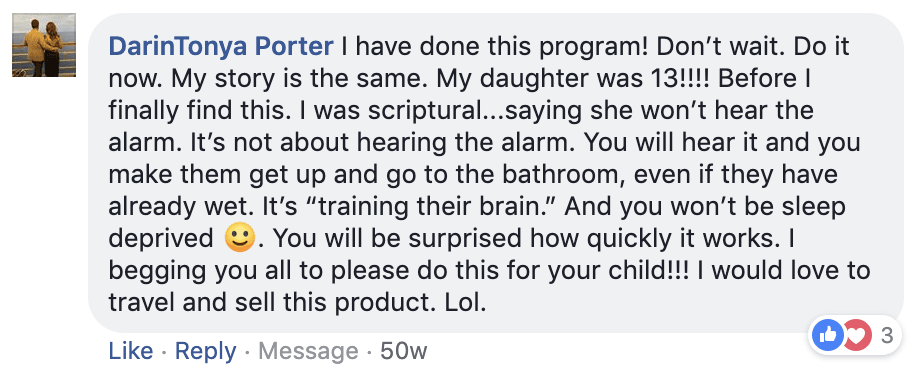 “…I wanted to let you know that Josh has had 30 straight dry nights! I can’t thank you enough for your help with this! He is looking forward to his first sleepover!!!…”