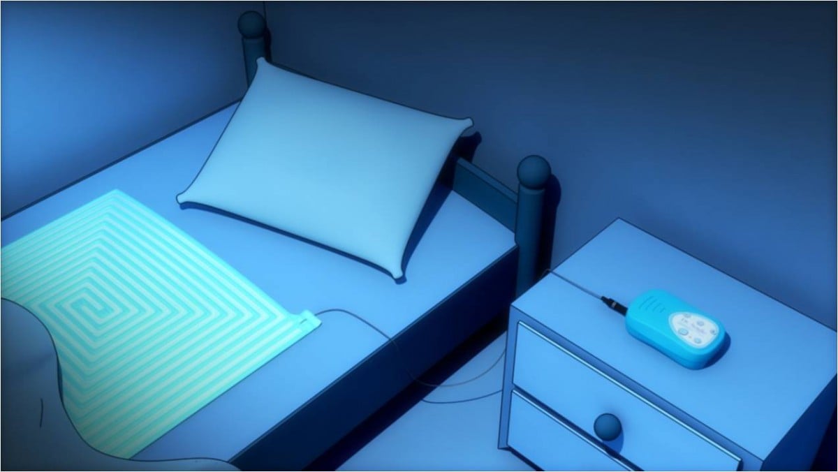 The difference from the typical wired buzzers is that wireless buzzers use a radio transmitter placed on the sensor plate on the lower abdomen near the child’s sexual organ. A radio receiver is installed in the alarm, which is attached to either the child’s pajamas or placed next to the child’s bed. When the child wets the bed, radio waves are transferred from the transmitter to the receiver, and the alarm is activated.