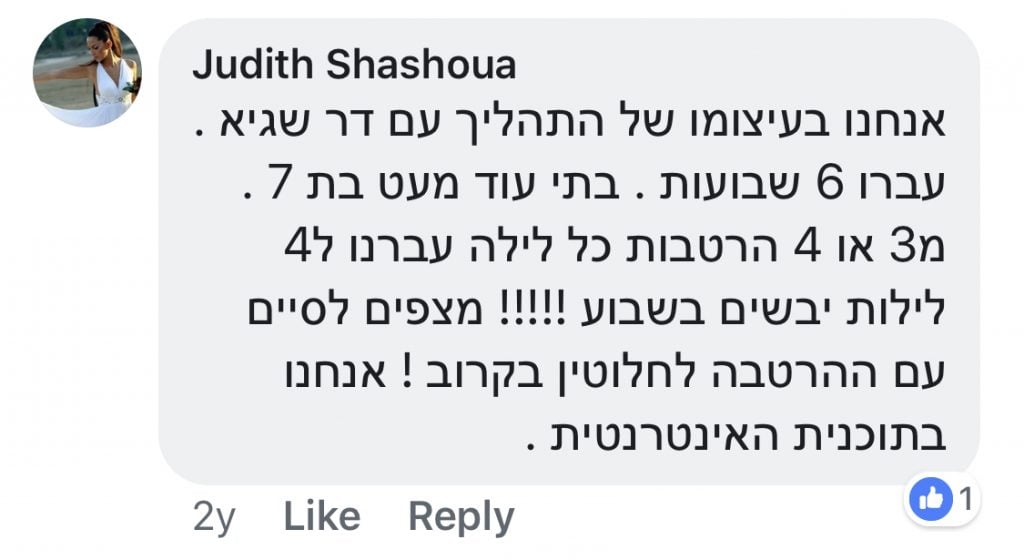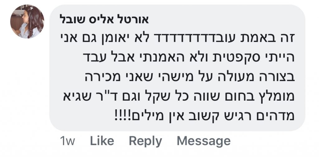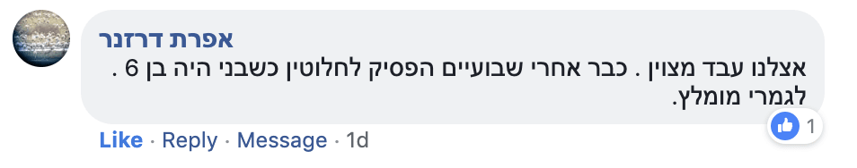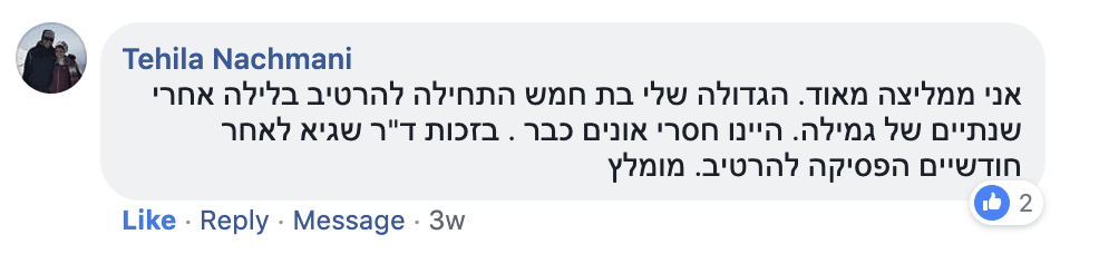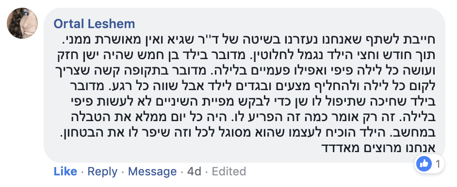 “זה כייף לקום בבוקר ולראות שהמיטה יבשה, ואני כבר לא רטובה. אני כבר לא פוחדת לישון אצל חבר או חברה….תודה לך, עופרי אבא ואמא”